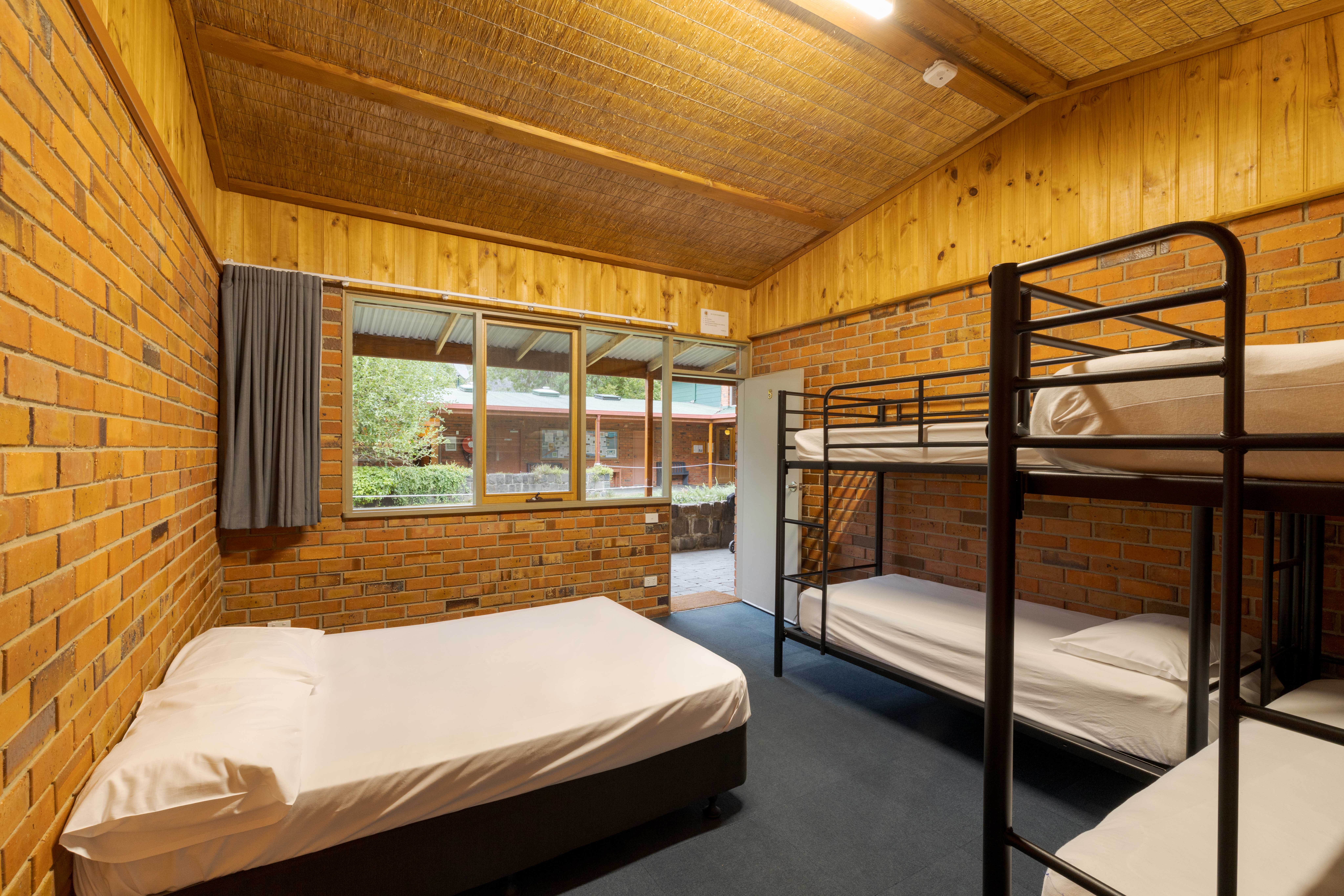 School and other group stays – beds are supplied with a bottom sheet, pillow and pillow slip; guests bring their own sleeping bags or top bedding / doona.