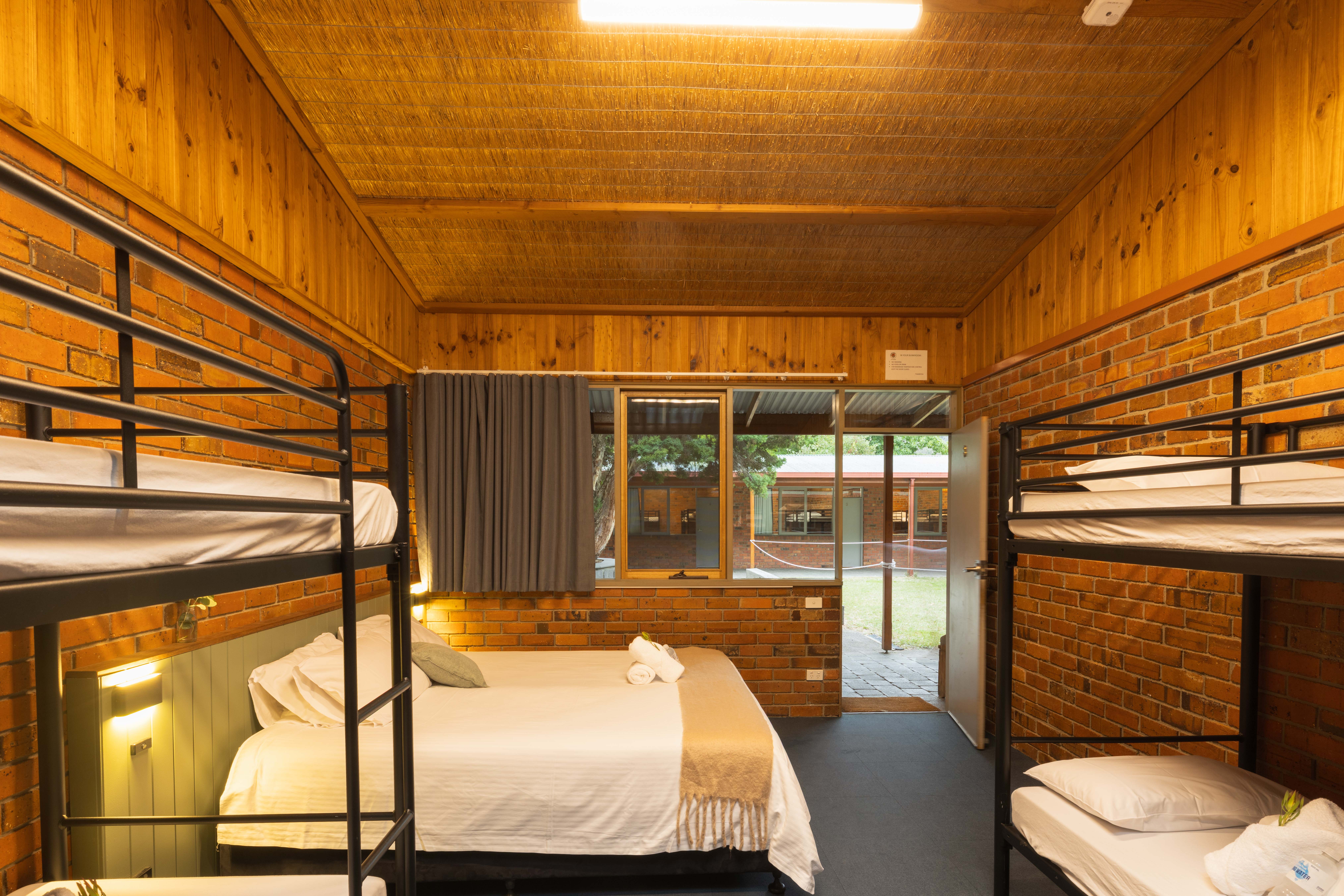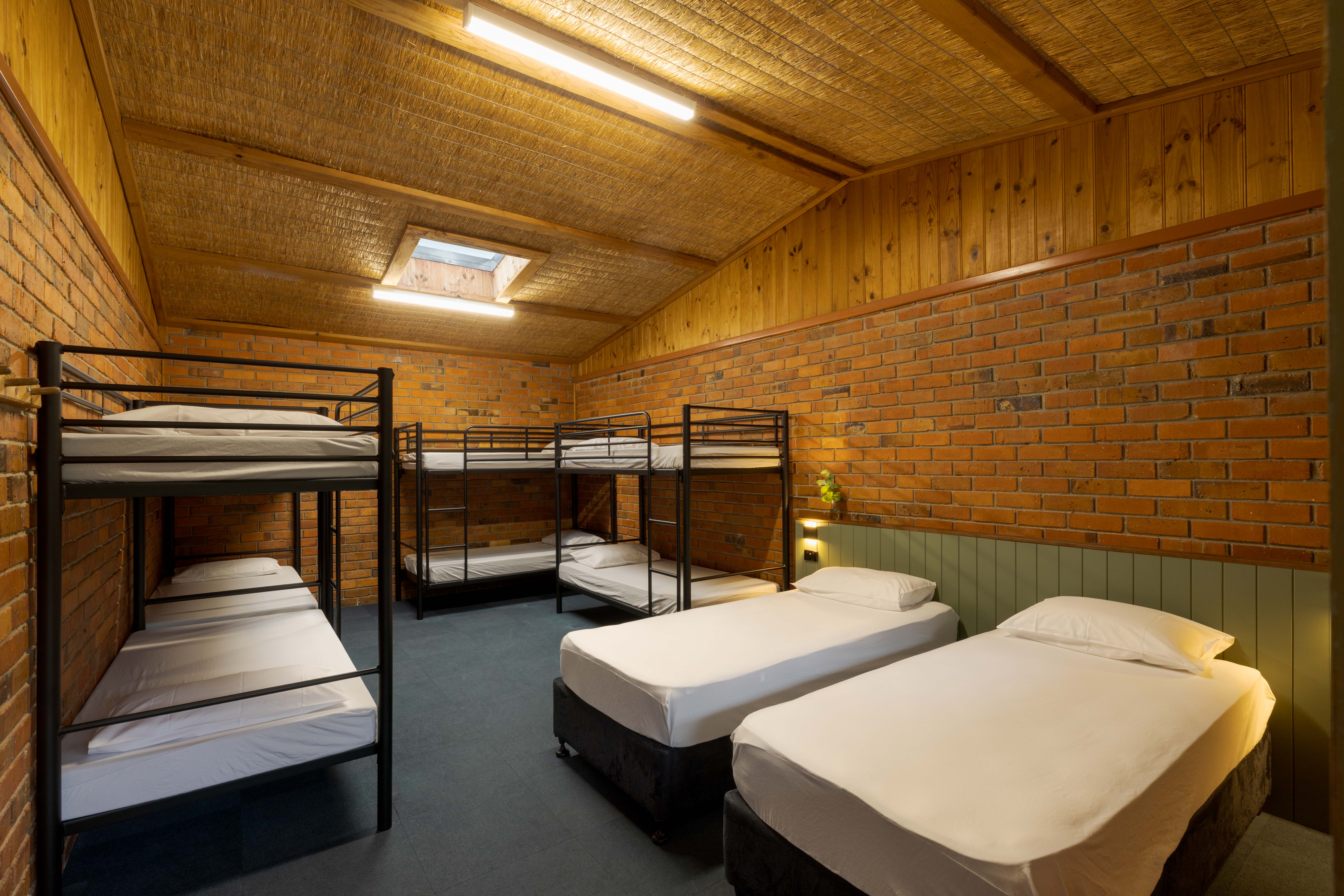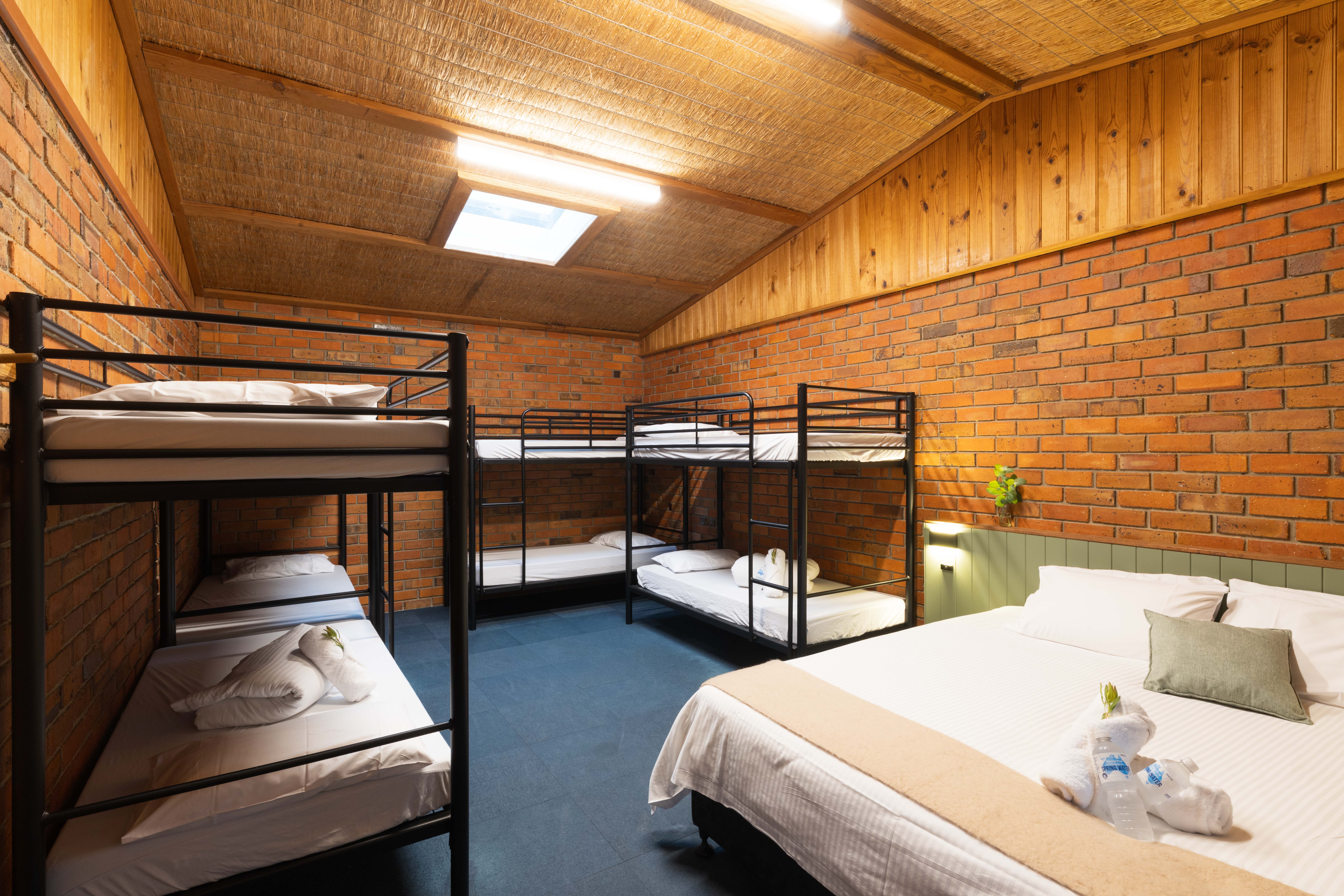 Rooms 2-4 and Rooms 6-8 – Sleep up to 10 guests with 4 bunks and a king / king single option. Access to shared bathroom amenities.