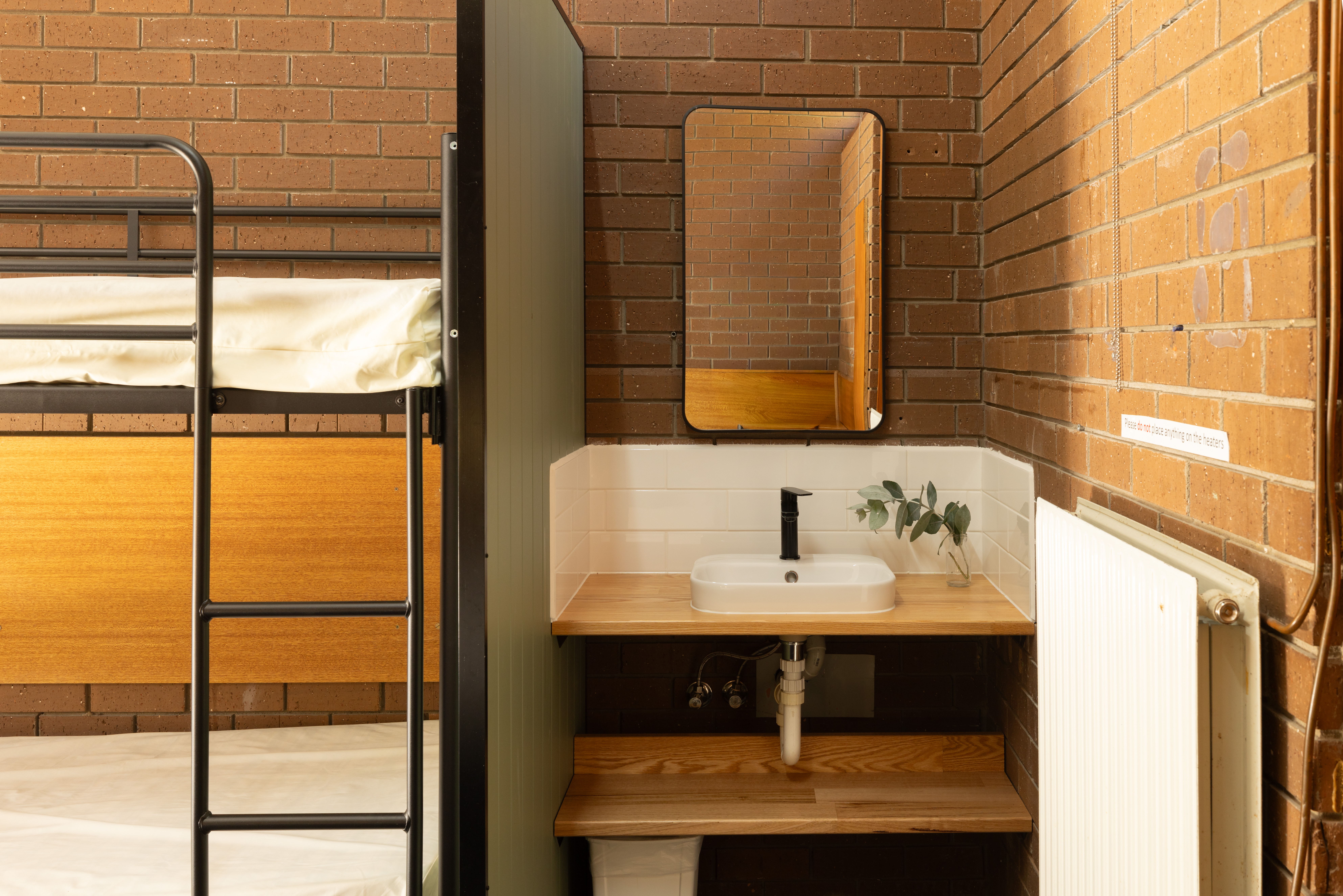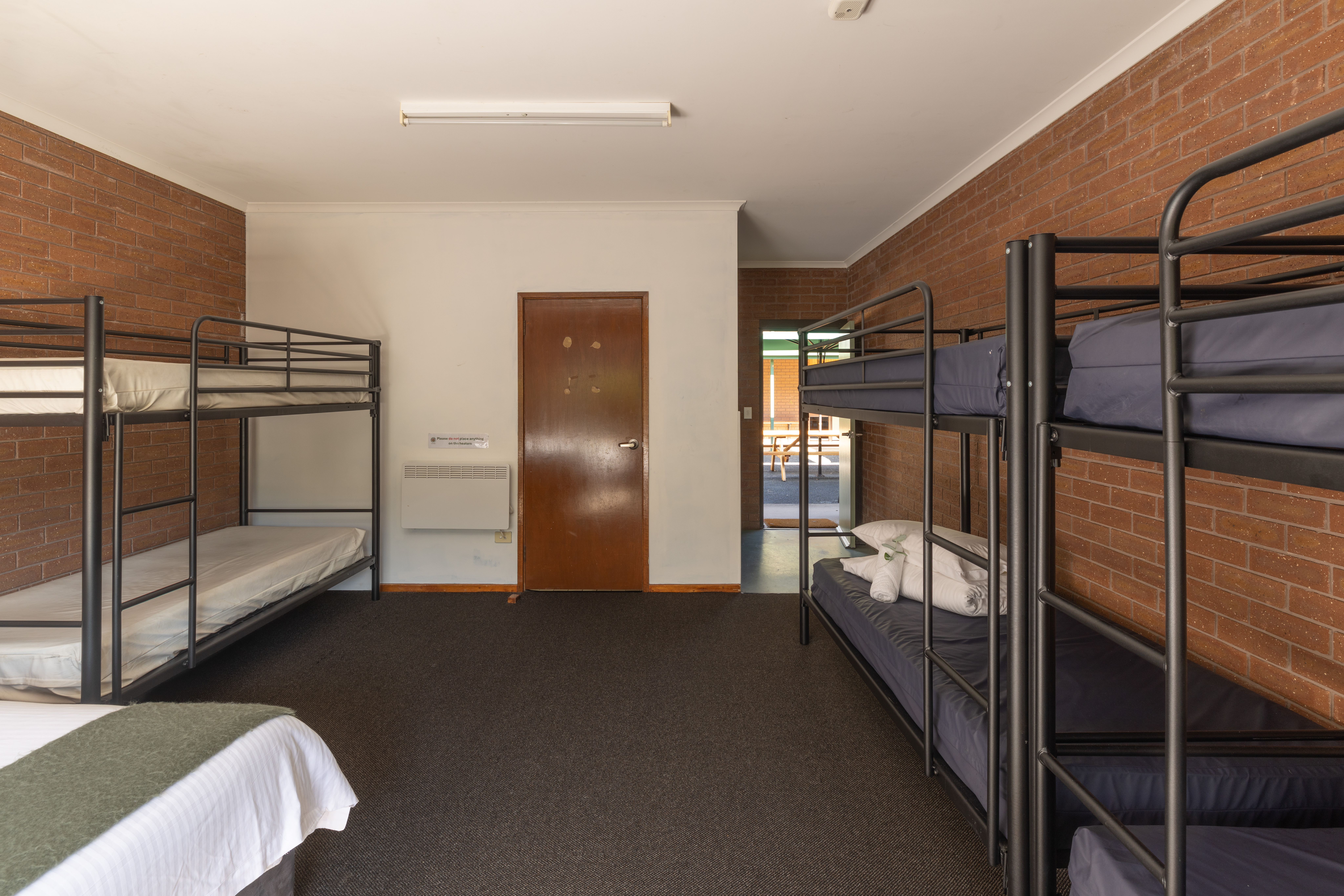 School and other group stays – BYO linen; guests bring their own bottom sheet, pillow and pillow slip, sleeping bags or top bedding / doona.
