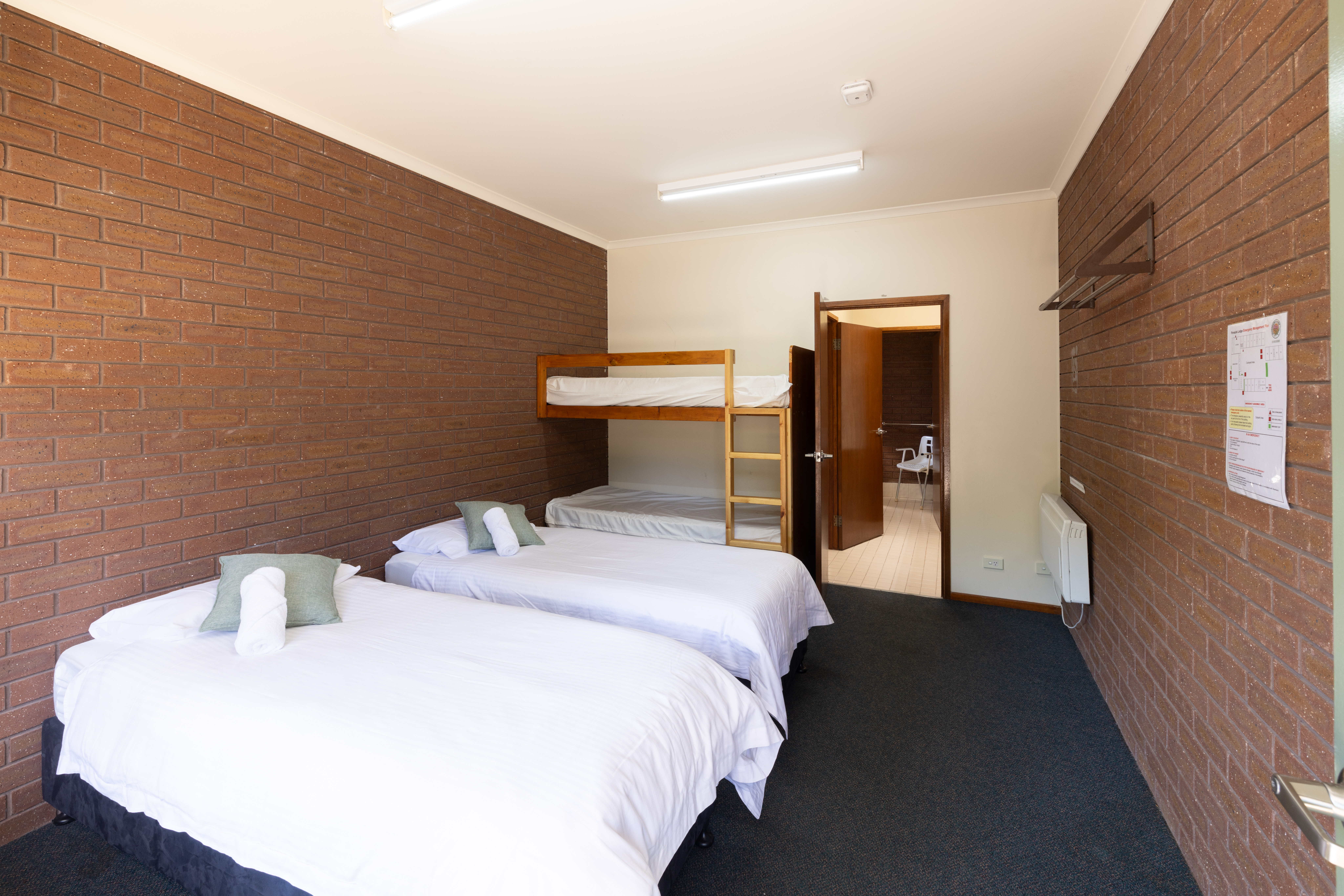 - Rooms 6 and 16 – Sleep up to 6 guests with 1 Bunk, 2 king split beds and 2 single beds. Ensuite Bathroom